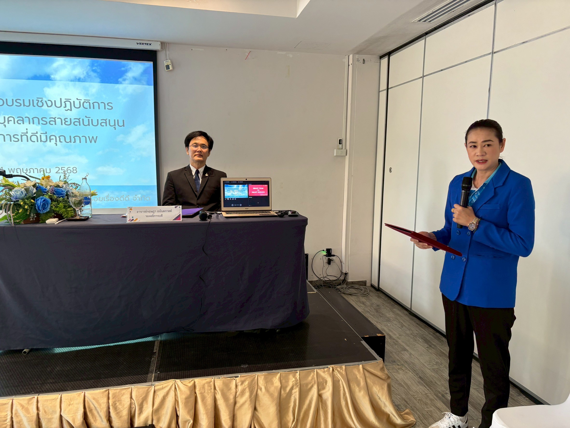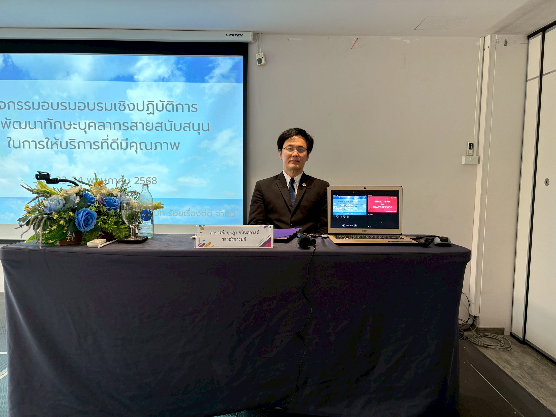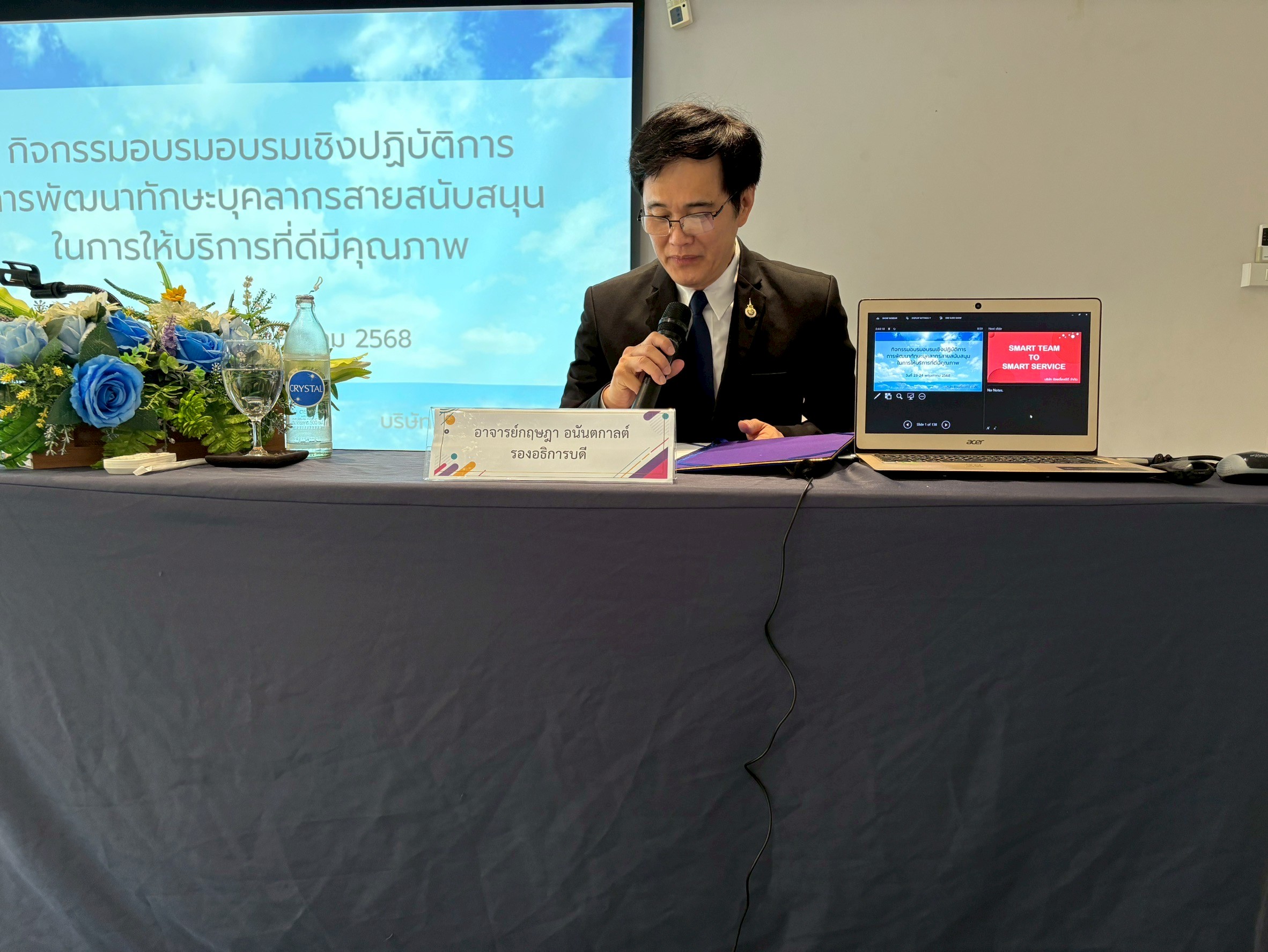 โดยมี รองอธิการบดี (อาจารย์กฤษฎา อนันตกาลต์) เป็นประธานกล่าวเปิด และผู้อำนวยการกองกลาง นางสาวภคมน คงสมมาตย์ เป็นผู้กล่าวรายงานและวัตถุประสงค์ในการจัดกิจกรรมฯ เพื่อให้บุคลากรมีความรู้ ความเข้าใจ และทักษะที่จำเป็นในการให้บริการอย่างมีประสิทธิภาพ ตอบสนองความต้องการของผู้รับบริการได้อย่างถูกต้อง รวดเร็ว และประทับใจรวมถึงพัฒนาการทักษะการสื่อสารและการทำงานเป็นทีมจะช่วยให้บุคลากรสามารถประสานงานกับหน่วยงานอื่น ๆ ได้อย่างราบรื่น สร้างทัศนคติเชิงบวกในการให้บริการส่งเสริมให้มีจิตใจรักในการบริการ มีความกระตือรือร้นและพร้อมที่จะช่วยเหลือผู้รับบริการอย่างเต็มที โดยวิทยากร คุณสร้อยทับทิม มัณยานนท์ จากบริษัท ร้อยเรื่องดีดี จำกัด