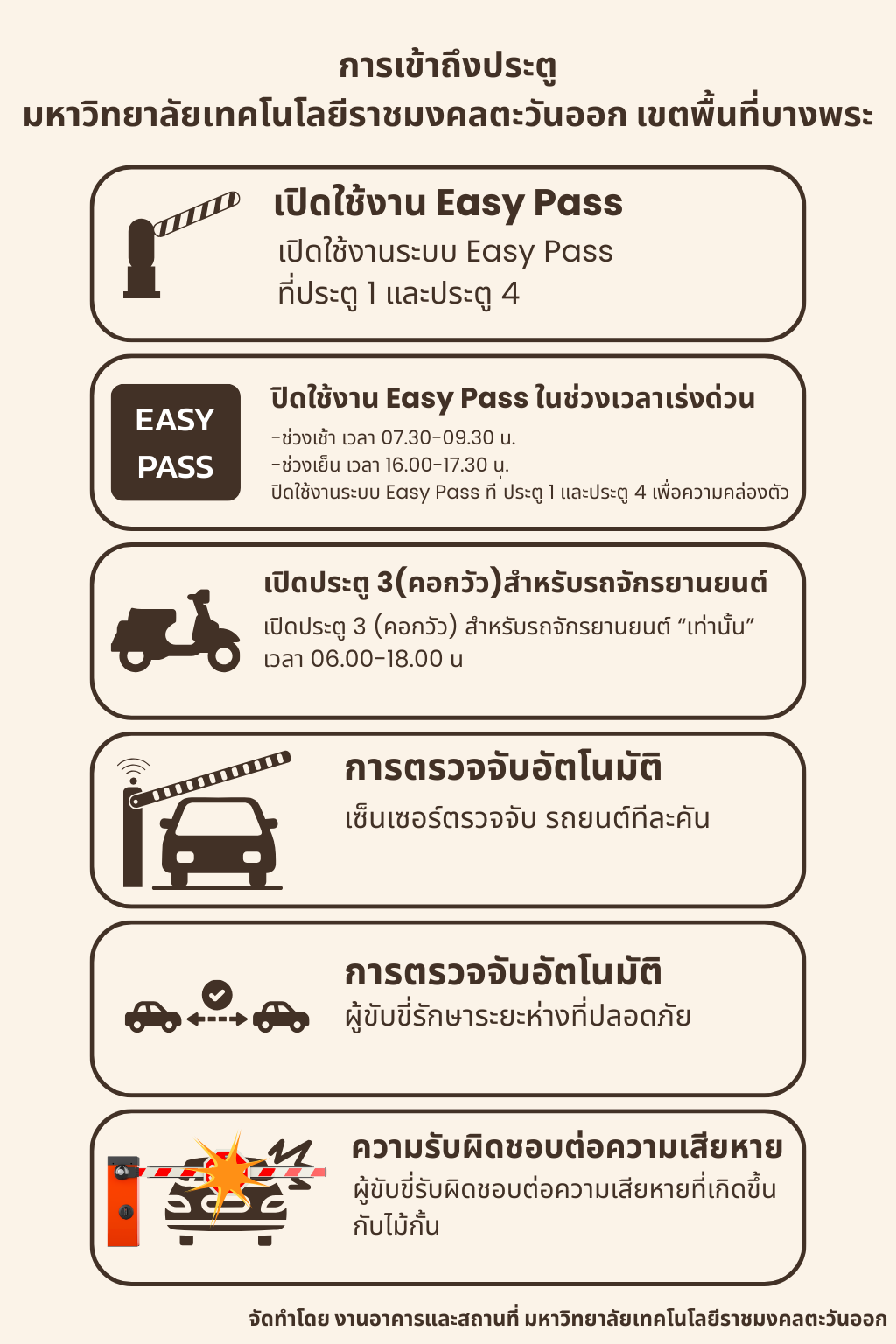 การเข้าถึงประตู มหาวิทยาลัยเทคโนโลยีราชมงคลตะวันออก เขตพื้นที่บางพระ