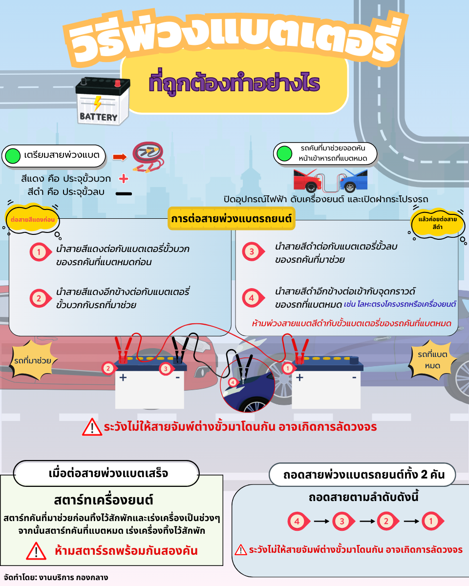 วิธีพ่วงแบตเตอรี่ ที่ถูกต้องทำอย่างไร