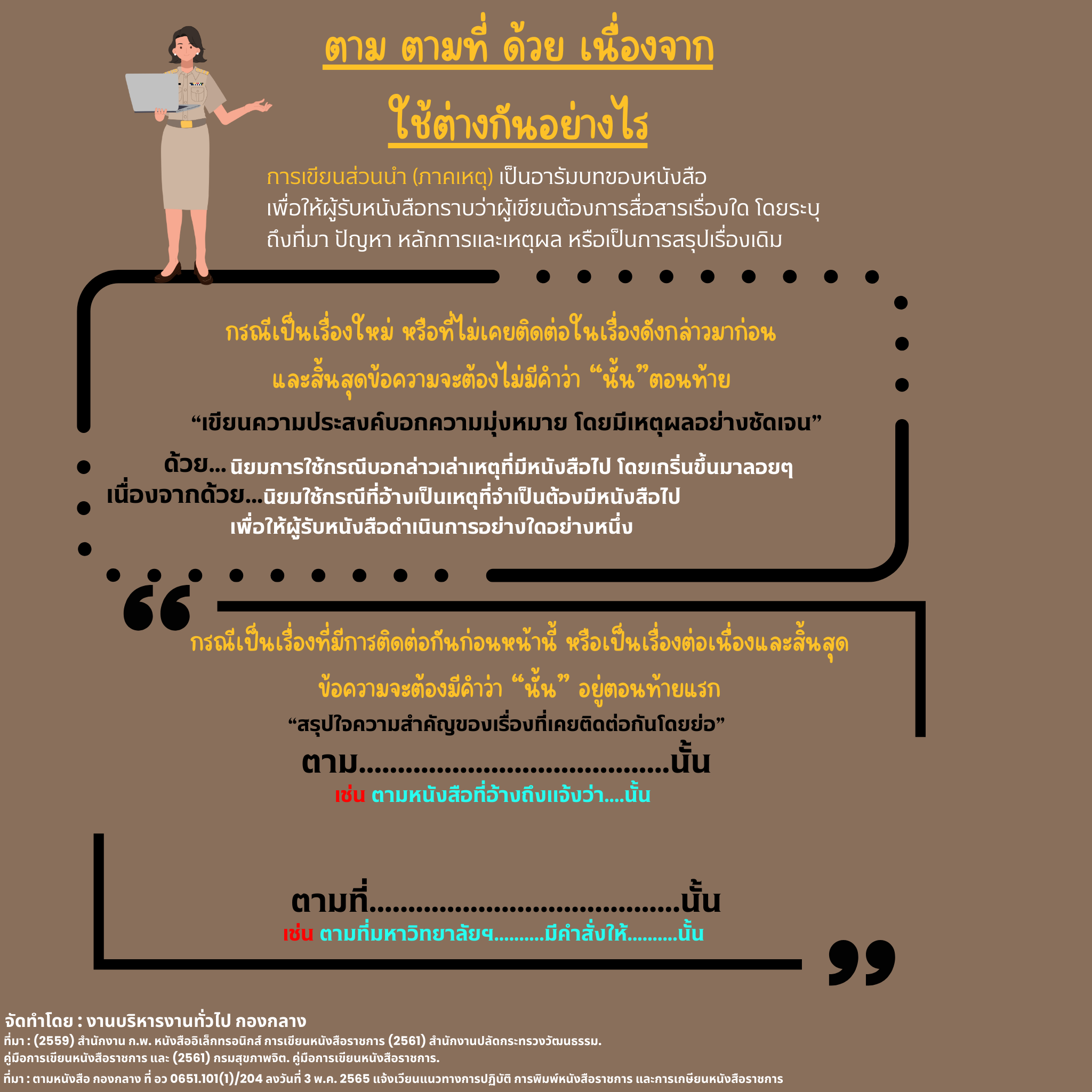ตาม ตาม ที่ ด้วย เนื่องจาก ใช้ต่างกันอย่างไร