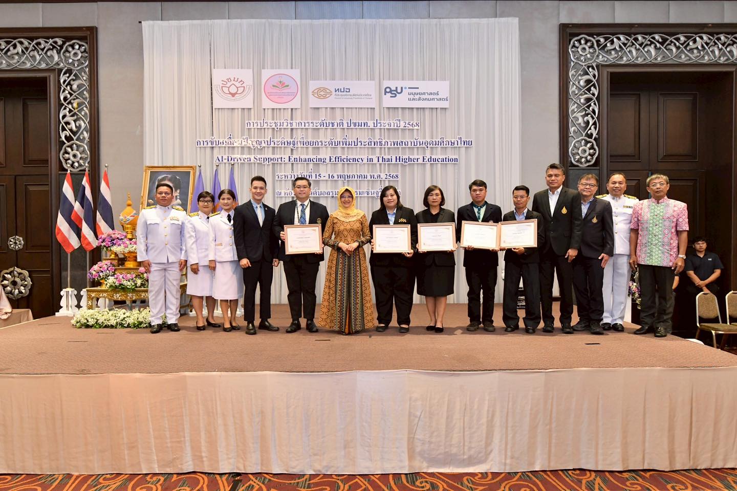นางสาวภคมน คงสมมาตย์ ผู้อำนวยการกองกลาง เข้าร่วมการประชุมวิชาการระดับชาติ ปขมท.ประจำปี 2568 โดยมีแพทย์หญิงเพชรดาว โต๊ะมีนา ที่ปรึกษารัฐมนตรีว่าการกระทรวงการอุดมศึกษา วิทยาศาสตร์ วิจัยและนวัตกรรม (อว.) เป็นประธานพิธีเปิดประชุม ปขทม.และเข้าตรวจเยี่ยมบูธนิทรรศการเครือข่าย และสอบถามภารกิจของเครือข่าย ในการขับเคลื่อนการพัฒนาระบบงานบริหารและธุรการ ในสถาบันอุดมศึกษาเพื่อเพิ่มประสิทธิภาพการปฏิบัติของบุคลากรสายสนับสนุน